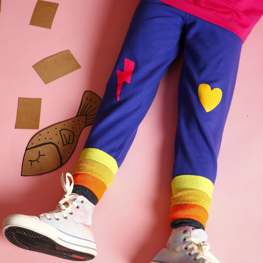 O destaque fica para a estampa em serigrafia na altura do joelho, em um vibrante azul royal, que traz um toque divertido e único ao visual infantil. Perfeita para acompanhar as brincadeiras com muito charme!